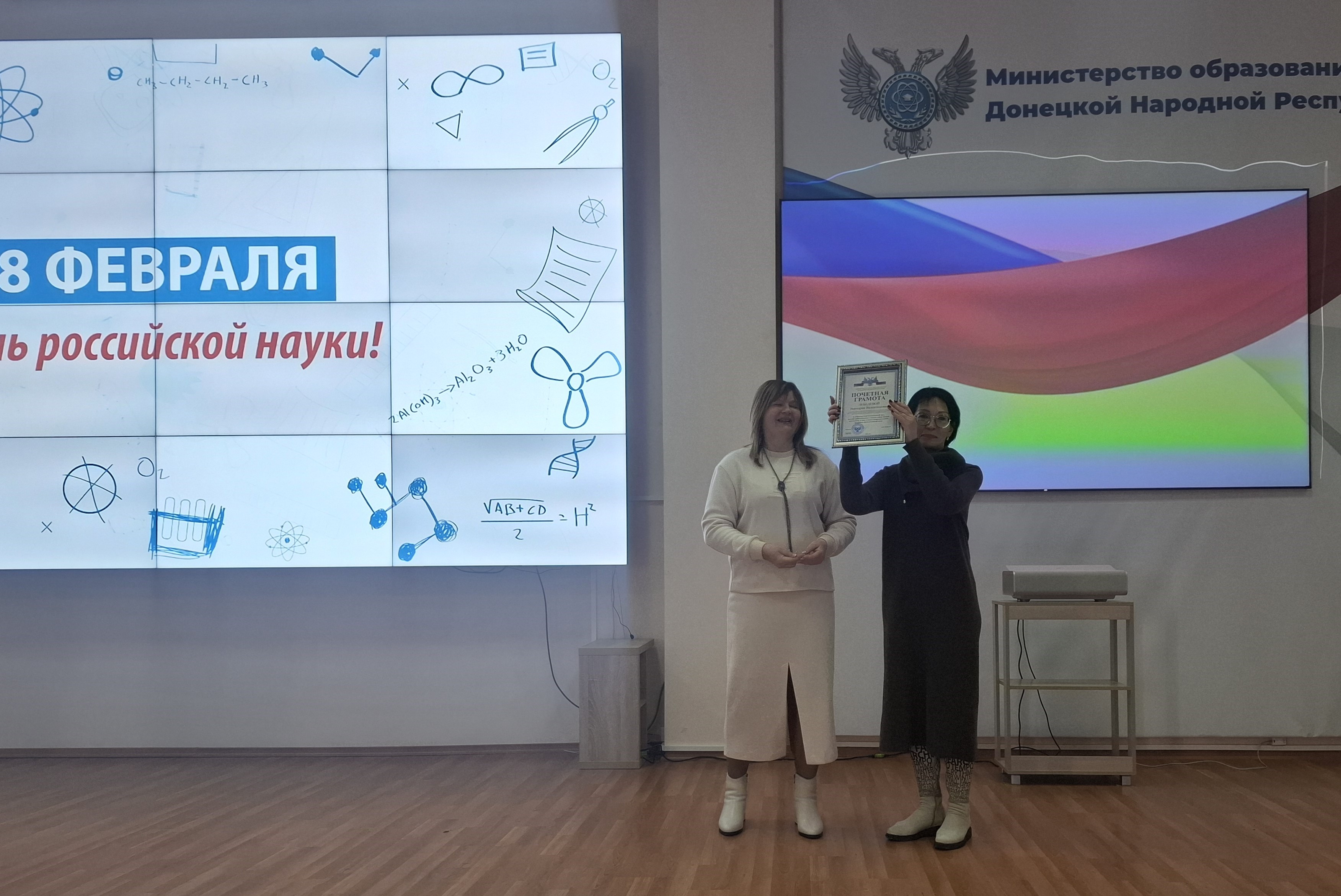 6 февраля 2026 года в Министерстве образование и науки Донецкой Народной Республики состоялось торжественное мероприятие, приуроченное ко Дню российской науки. Ученых Республики с праздником поздравили заместитель Председателя Правительства ДНР Лариса Валентиновна Толстыкина, первый заместитель Министра образования и науки ДНР Любовь Николаевна Волкова, председатель Комитета по науке и технологиям ДНР Алексей Михайлович Завгородний, советник Главы ДНР Михаил Николаевич Кушаков, заместитель председателя Региональной организации Общероссийского Профсоюза образования и науки в ДНР Евгений Николаевич Лапенко.