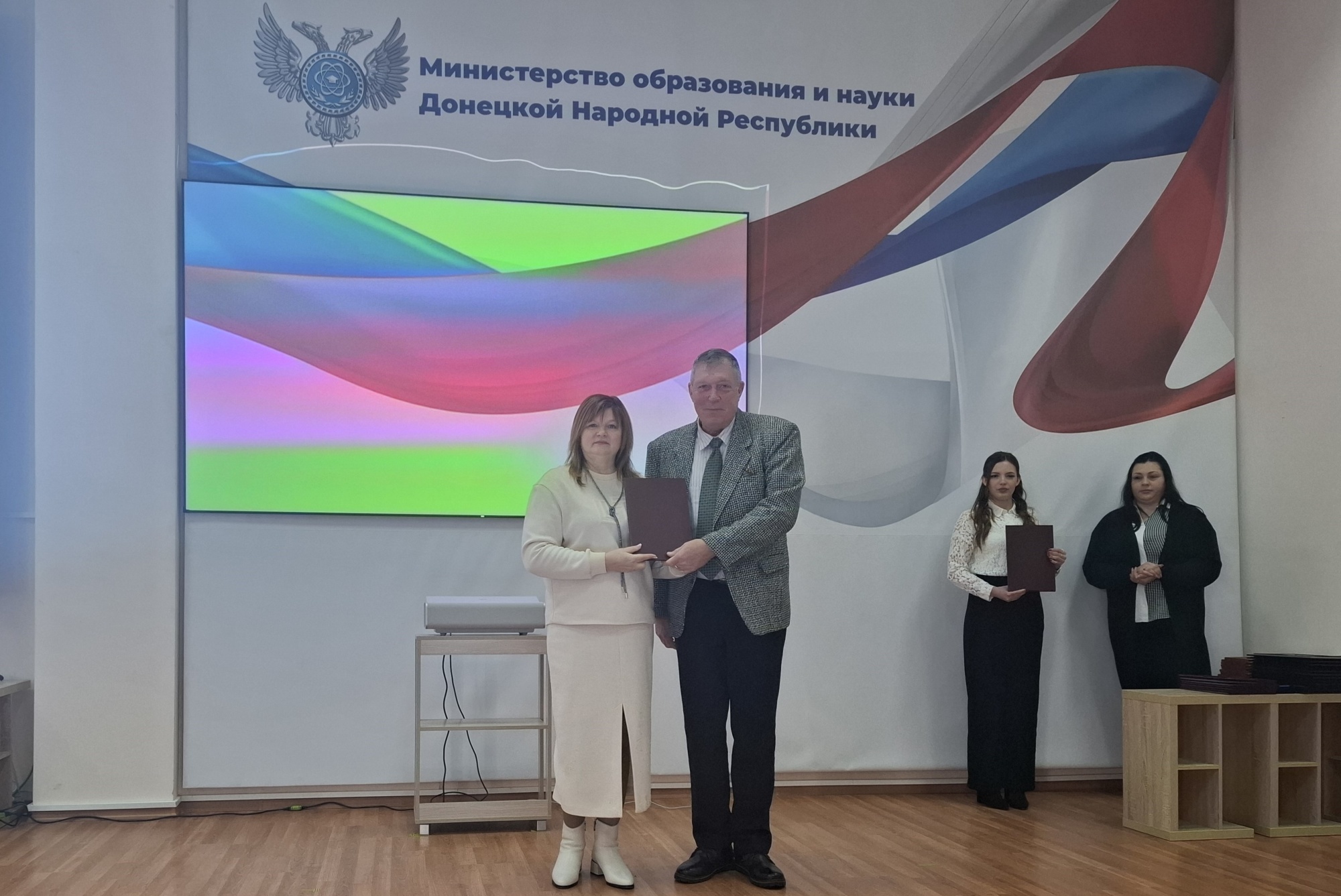 Первый заместитель Министра образования и науки Донецкой Народной Республики Волкова Любовь Николаевна вручила ранее подписанное Кирьяном Андреем Петровичем и Министром образования и науки Донецкой Народной Республики Трофимовым Олегом Владимировичем Соглашение о сотрудничестве между Институтом и Министерством.