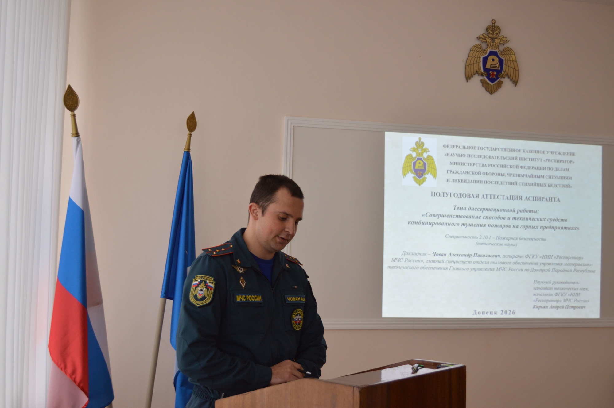 В ФГКУ «НИИ «Респиратор» МЧС России» 24 марта 2026 года состоялось заседание секции Ученого совета «Безопасность жизнедеятельности в чрезвычайных ситуациях» под председательством доктора технических наук, старшего научного сотрудника Долженкова Анатолия Филипповича.